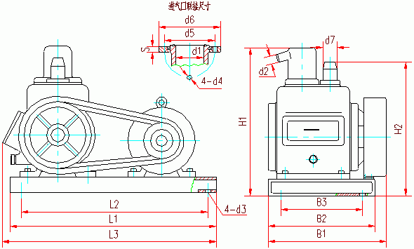 2X系列雙級(jí)旋片真空泵安裝尺寸: